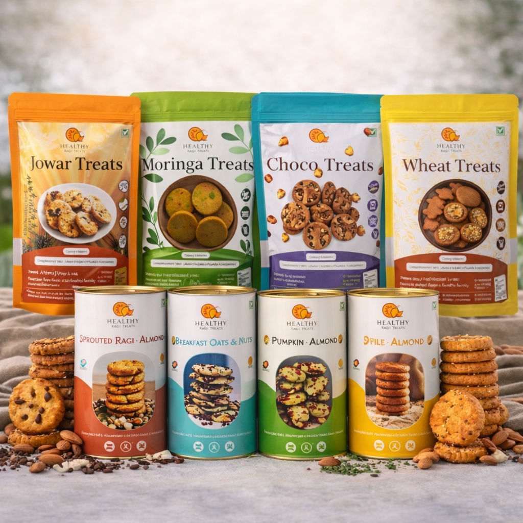 This combo is more than just a collection of products โ itโs a complete healthy snacking experience, carefully packed to bring the taste of home, nutrition of millets, and trust of Healthy Treats to customers across the globe.