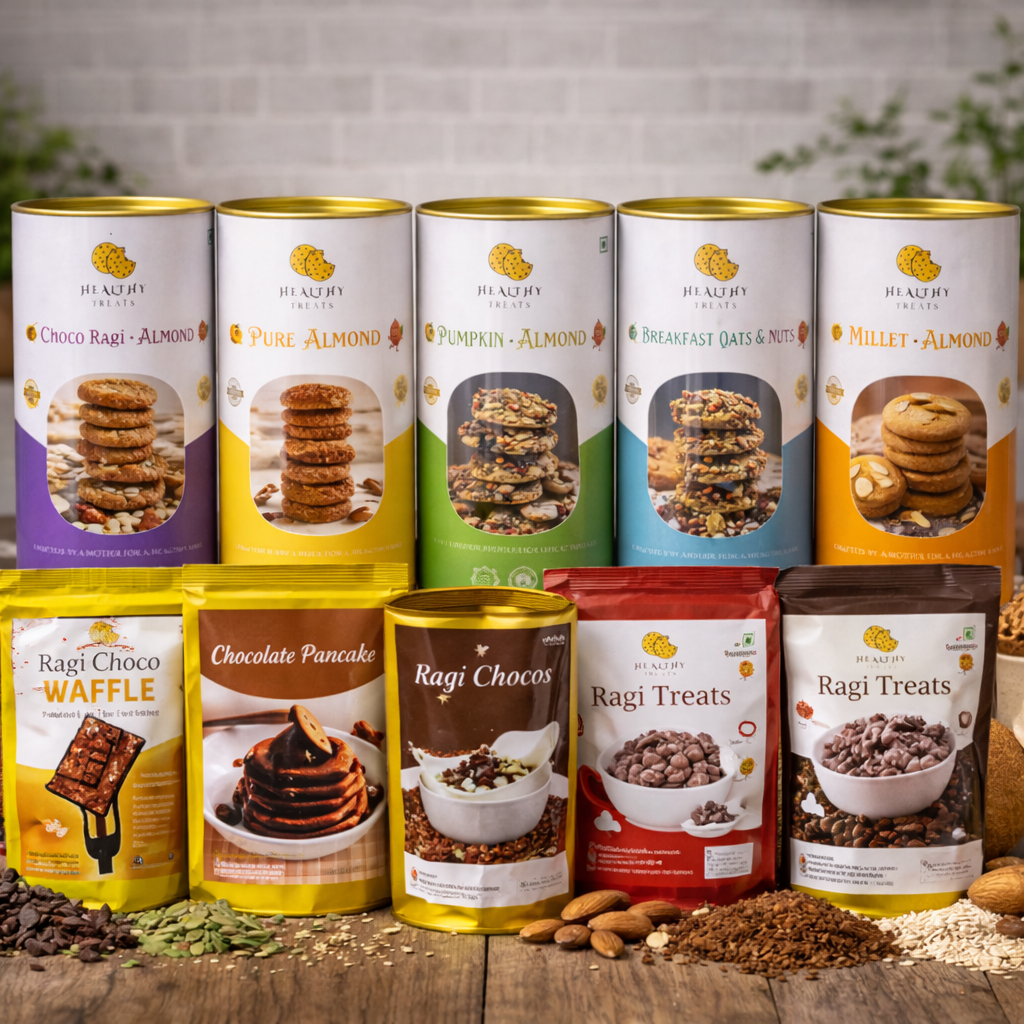 From crunchy cookies to wholesome flours and instant mixes, this combo brings together our most-loved healthy treats in one delicious bundle. Every item is homemade in small batches, crafted with 100% clean, natural ingredients — no maida, no preservatives, no shortcuts.